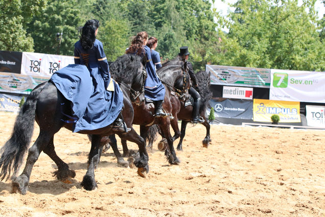 Wir stellen die pechschwarzen Pferde mit selten langer Mähne in Einzelaufführungen, Pas de deux oder in großen Quadrilleformationen vor.